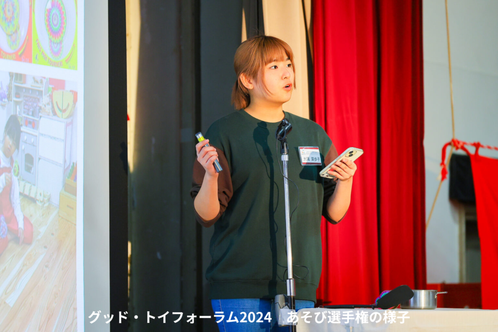 「グッド・トイフォーラム2024 あそび選手権」で優勝したおもちゃコンサルタント84期の大隅菜歩子です。