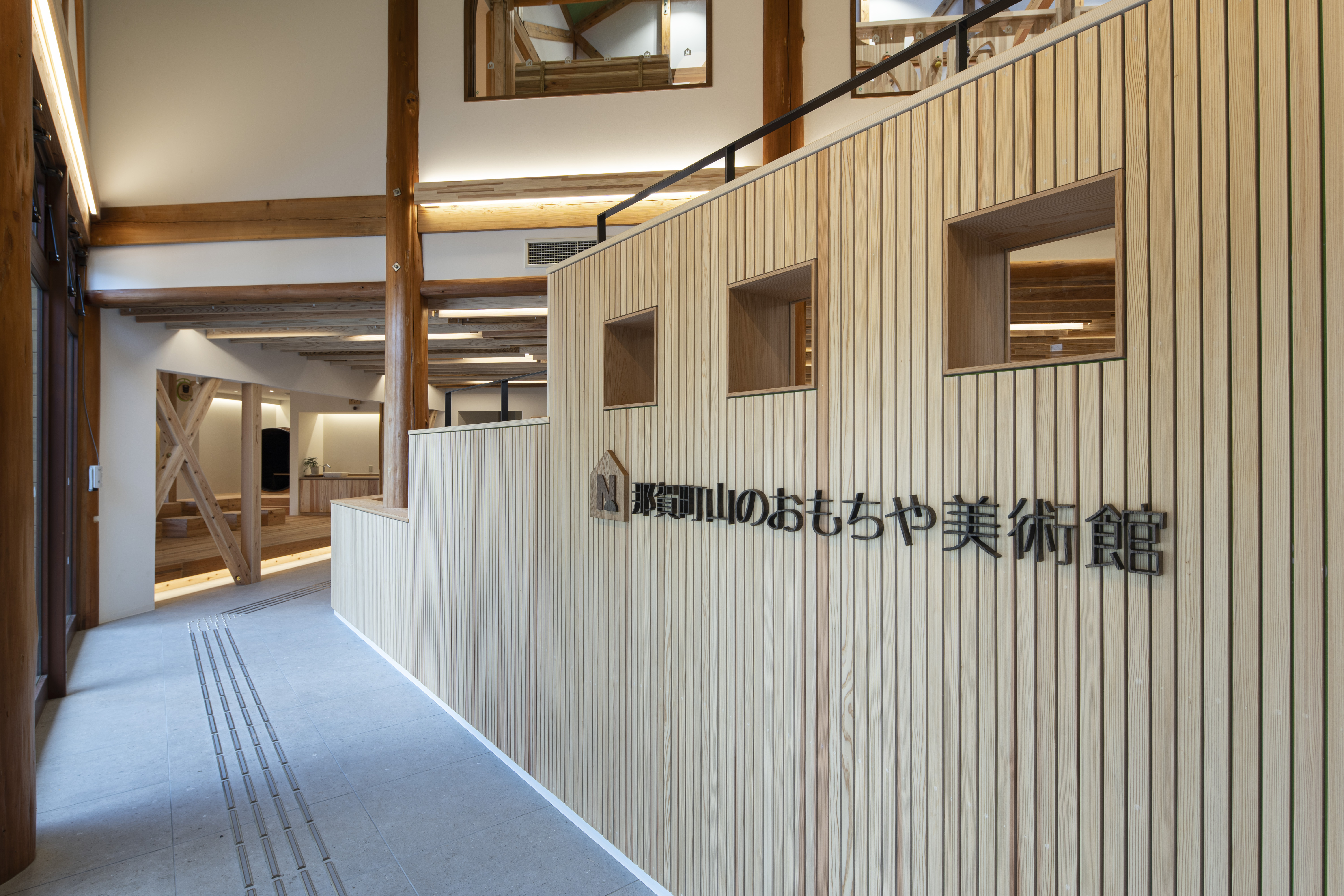 那賀町は、森林率95%を活かし、徳島林業の中心地として、林業の再生に取り組んでいます。2017年には県内初のウッドスタート宣言を行い、「木頭ゆず」型の積み木を誕生祝い品として地域の子どもたちへの配布を開始しました。木育と林業活性化のさらなる推進を目的に、県立の「徳島木のおもちゃ美術館」に次ぐ県内2つ目のおもちゃ美術館として、整備されました。