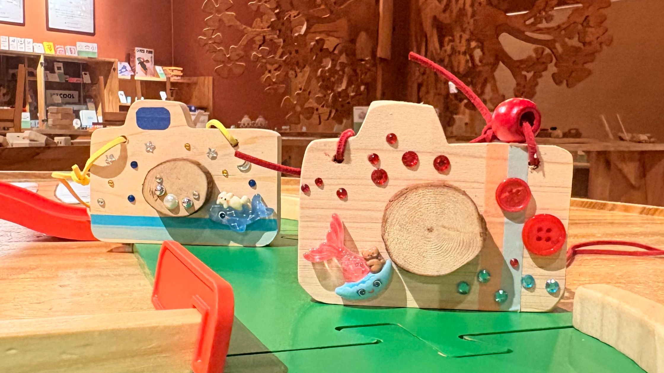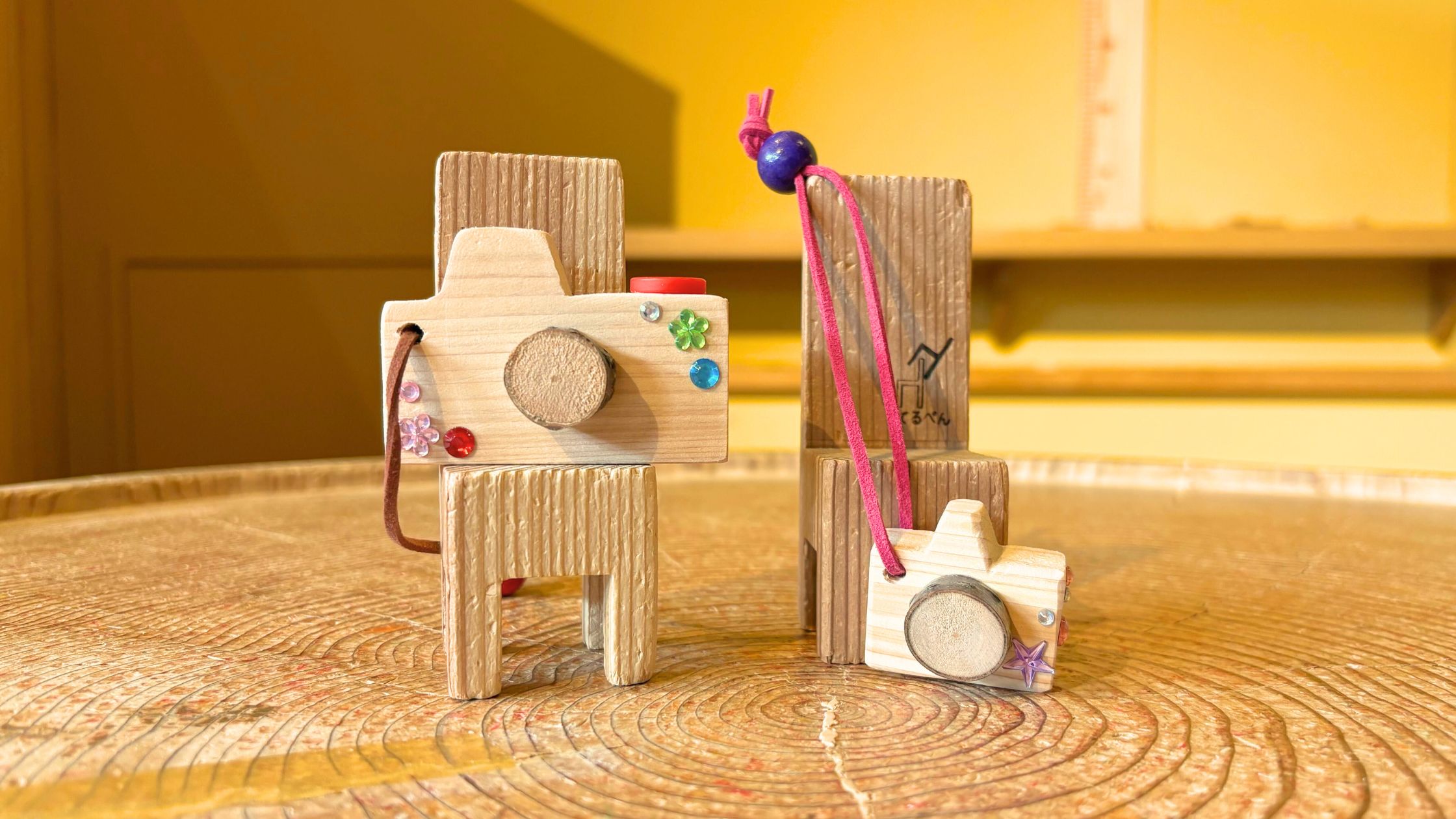 木でできたちいさいカメラにデコパーツやシールを貼ってオリジナルのミニデコカメラをつくろう!