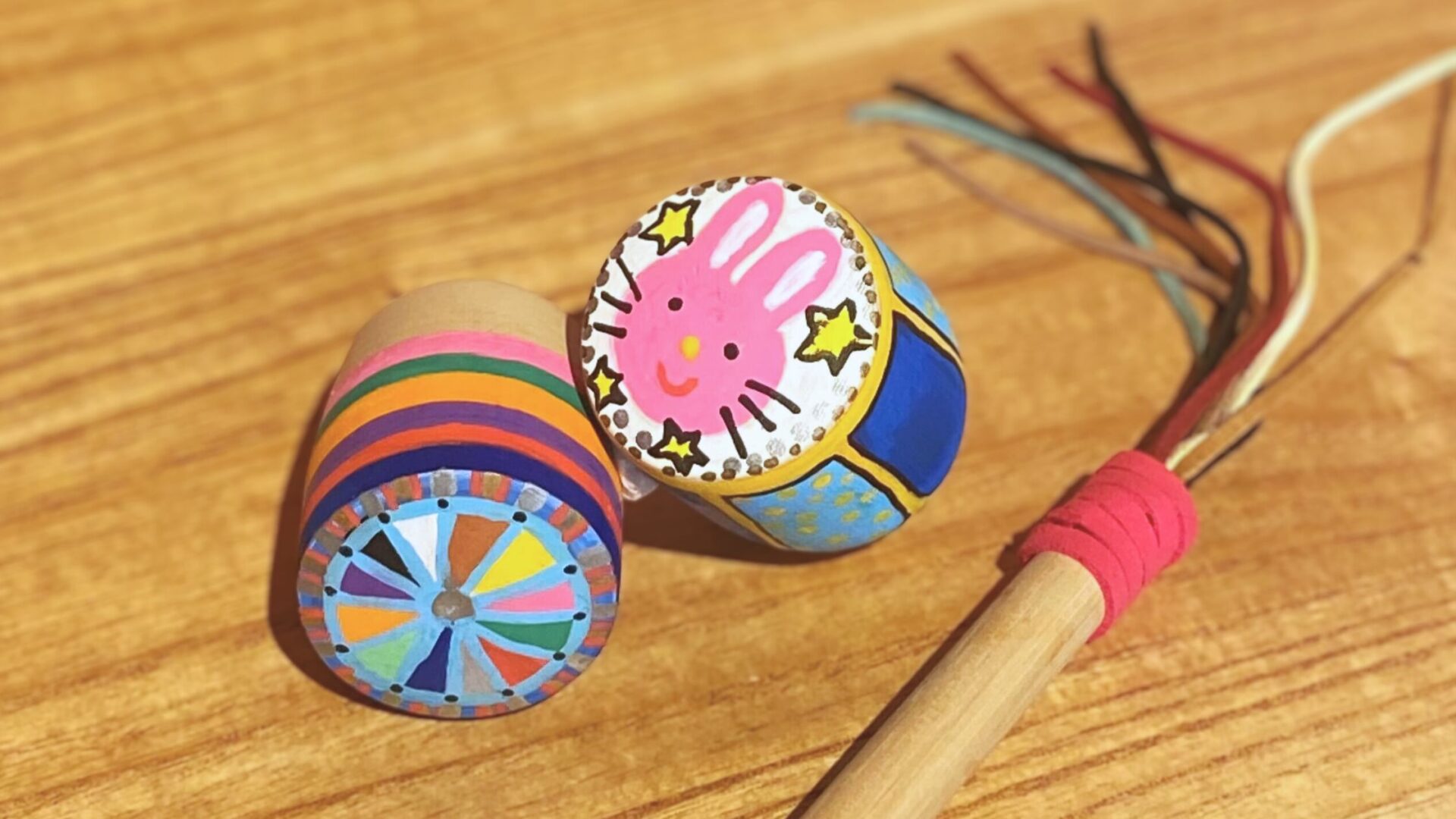 完成したらおもちゃ学芸員さんにたたき棒をもらって一緒に遊んでみよう♬