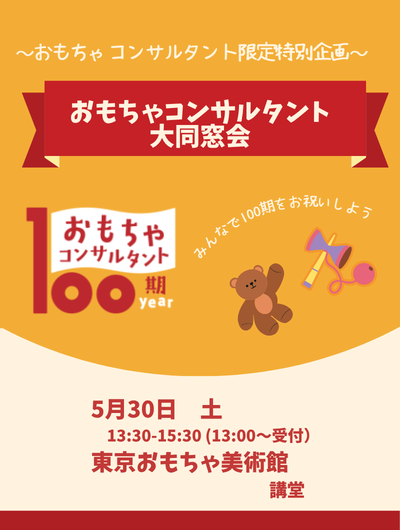おもちゃと遊び 2026.04.01 \おもちゃコンサルタント限定企画/【100期year大同窓会】