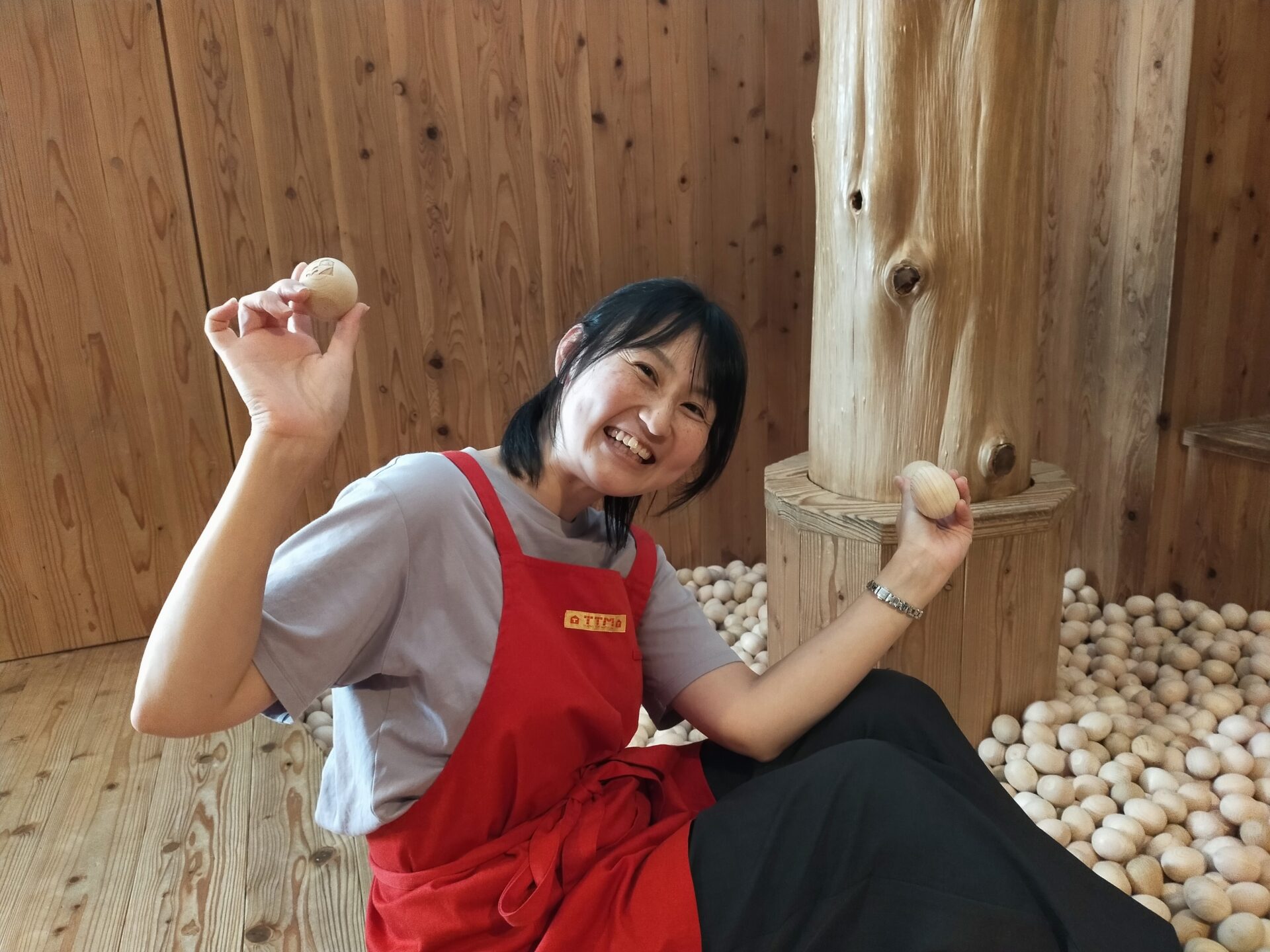 赤ちゃん木育ひろばの「あそぼーる」。