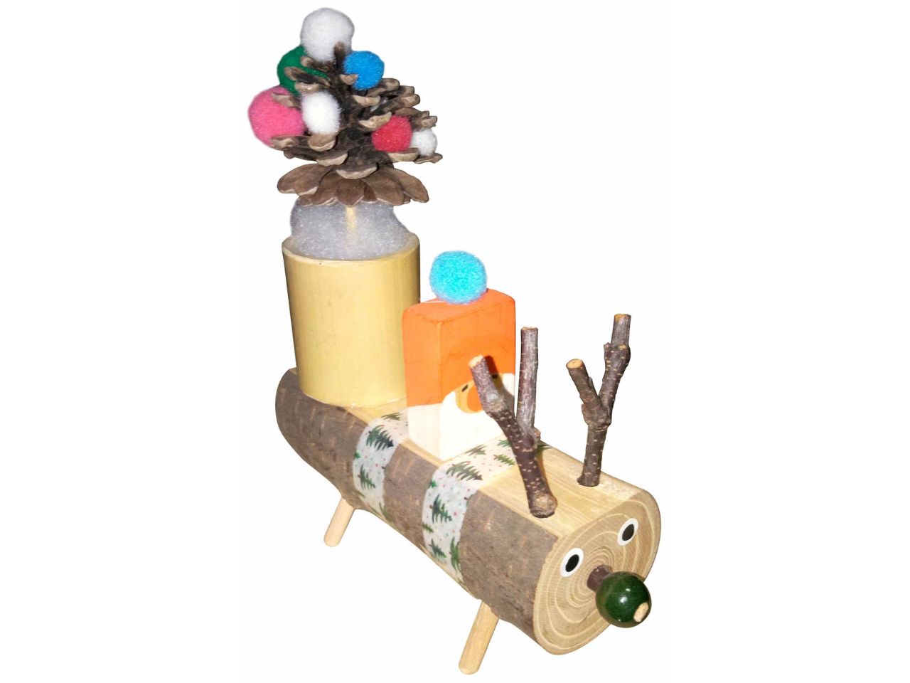 丸太や竹などの自然物で、 サンタクロースとトナカイを作ります。