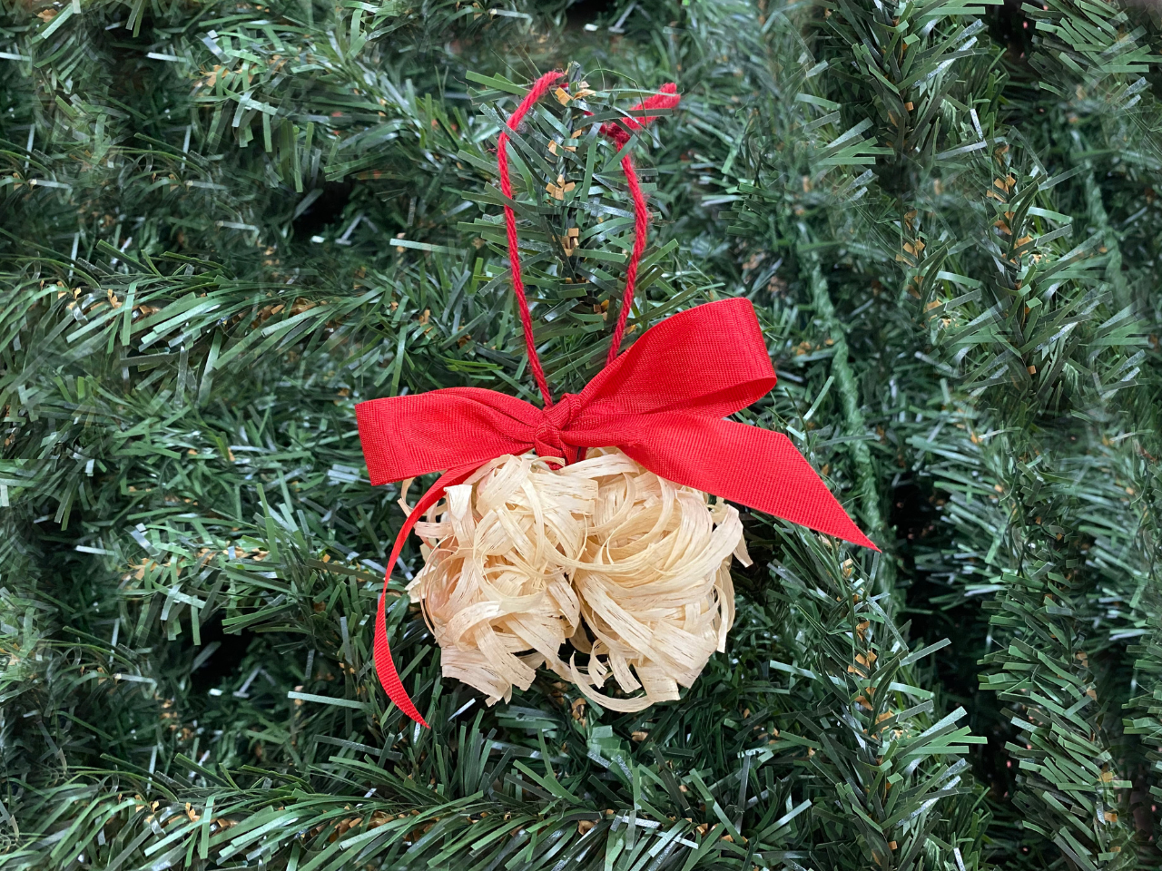 カンナくずを使って、クリスマス飾りにぴったり、ボンボン作りをします。
