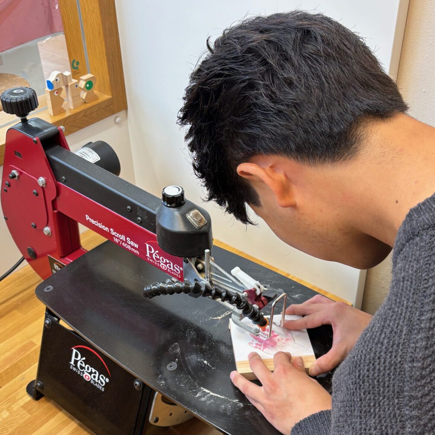 「遊具環境製作 木工房どんどこどん」の宮﨑 昌洋さんが自ら東京おもちゃ美術館に持ってきて下さり、スタッフはおうちの手触りにうっとり…♪(たか)
