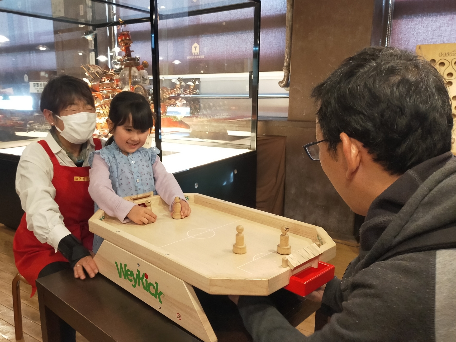 それを25点ずつ、おもちゃ学芸員の皆さんに職員から遊び方をレクチャーさせていただきました。