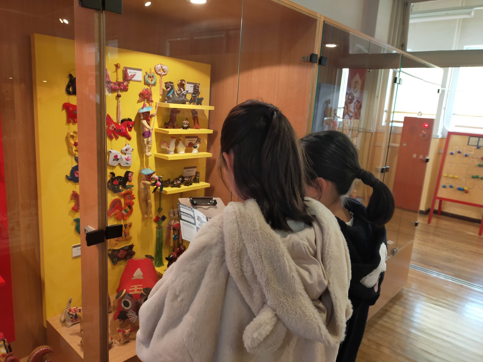 11/11 企画展示室で楽しそうに遊ぶ子供たちを発見! ワークシートにあるおもちゃを探して、どこの国のおもちゃか、そんな素材でできているのかを調べていくワークショップ「何でできているのカメラ」に参加している子供たちがいました。