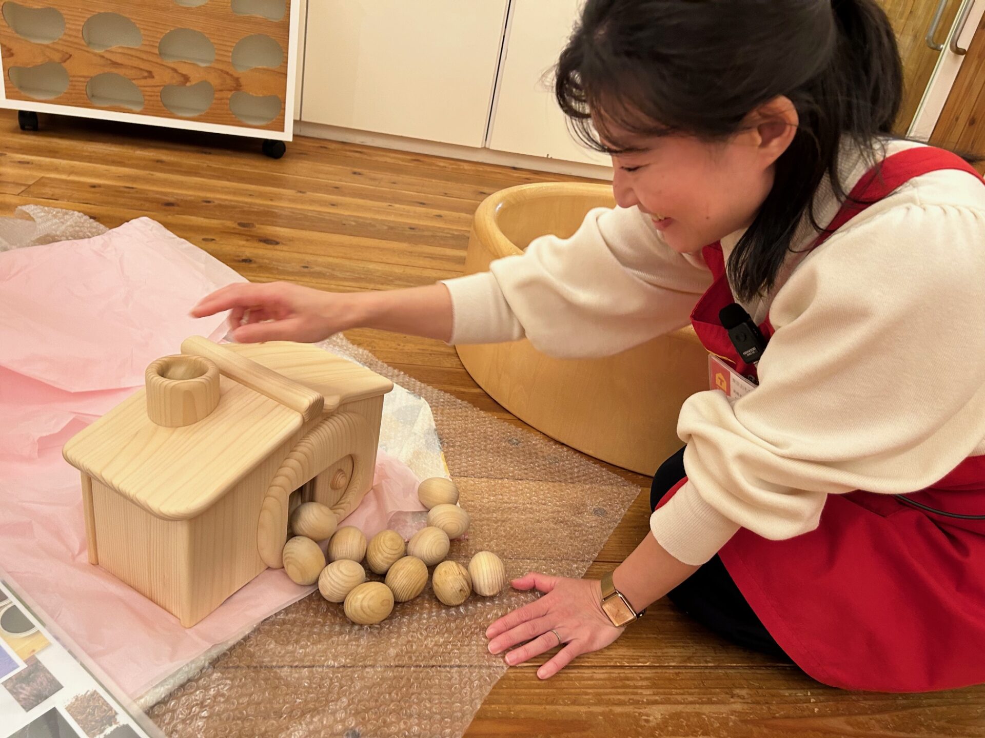 11/23 新しいたまごのおうち先日、赤ちゃん木育ひろばのヒノキのたまごのおうちを新しく迎え入れることができました。