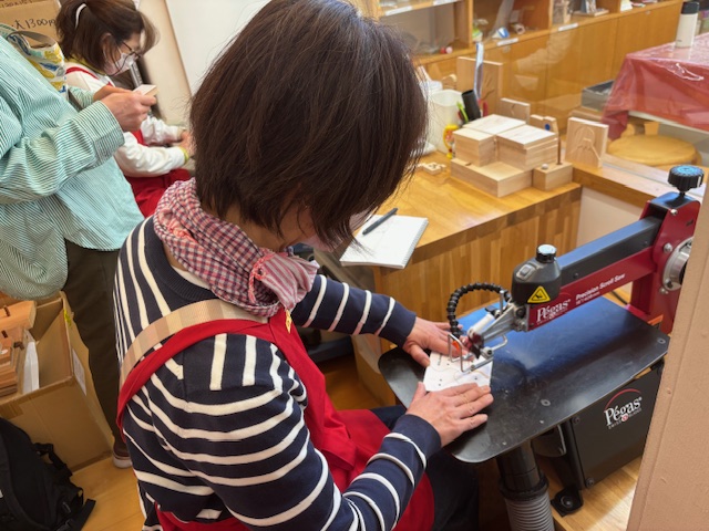 まず、糸鋸盤の歴史や使用方法などをレクチャーを交えながら学びます。