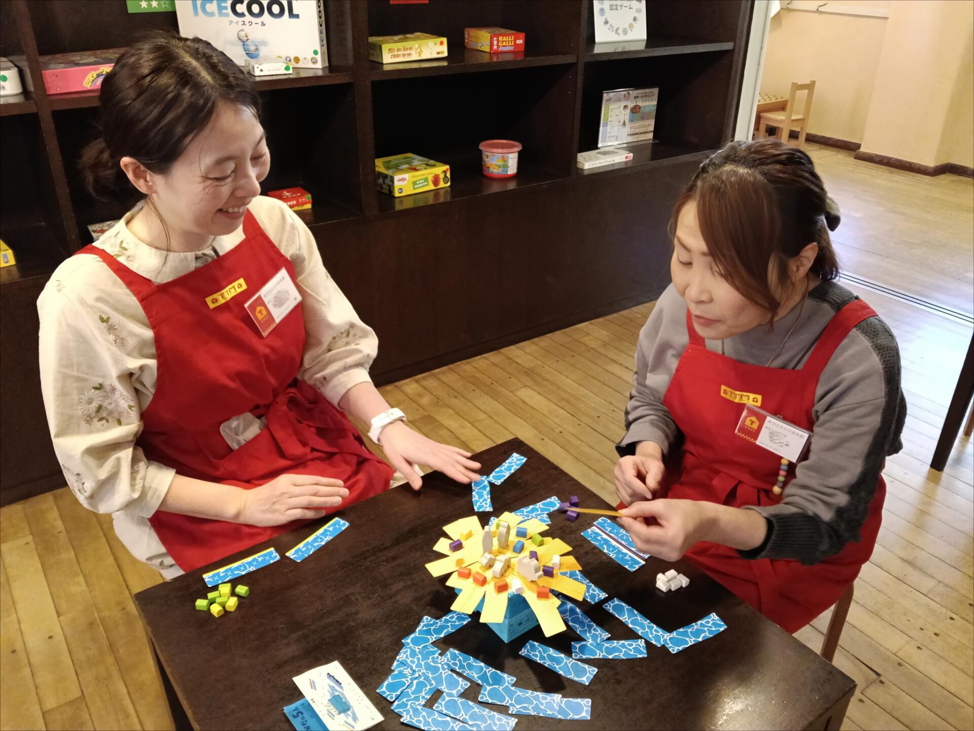 来館者の方に楽しくご案内できるよう、おもちゃ学芸員も遊びながらルールを覚えています。