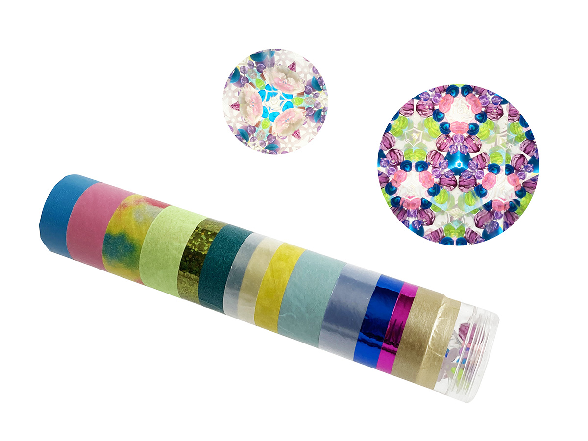 万華鏡作家が指導する、自分だけの万華鏡がづくり。ビーズを選んだり、筒はカラフルなテープで飾りつけができます。