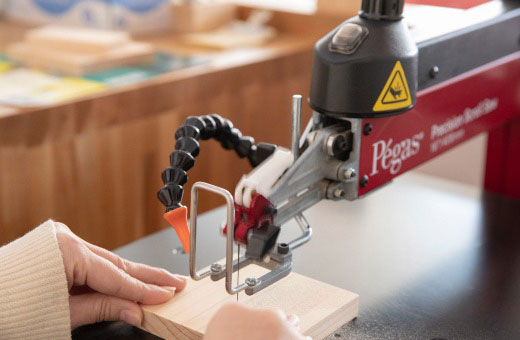 最新のスイス製いとのこで木のおもちゃづくりも体験できます。