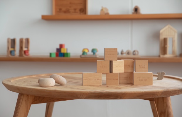 1万円以上のご寄付をいただいた方には、お礼としてお名前が刻印された積み木を制作し、館内に掲示させていただいています。